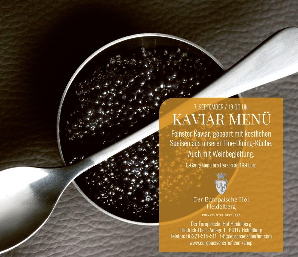 Luxus & Genuss: Feinster Kaviar, gepaart mit köstlichen Speisen aus unserer Fine-Dining-Küche. Genießen Sie unser elegantes 6-Gang-Kaviar-Menü. Auch gerne mit einer passenden Weinbegleitung aus erlesenen Tropfen. Wir freuen uns auf Ihren Besuch.