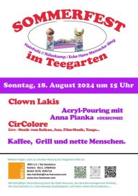 Sommerfest im Teegarten Hannover im Stadtteil Hainholz am 18.08.2024 mit Designsie Acrylic-Pouring (Unterhaltung / Freizeit | Hannover)