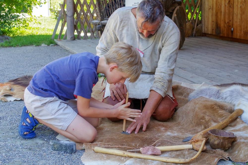 Am Anfang unserer Veranstaltungsreihe steht der Archäologe und Steinzeitschamane Jean Loup Ringot. Herr Ringot wird in der Rolle des Pfahlbauers „Uhldi“ den Hausbau am vorgeschichtlichen Bodensee erläutern: Woher kamen die Rohstoffe für die Häuser? Warum Pfahlbauten? Und wie bekamen die Menschen die Pfähle in den Boden???