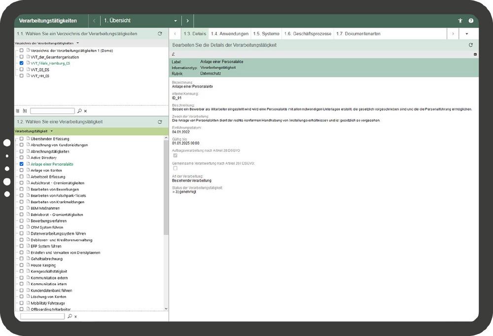 - Verzeichnis der Verarbeitungstätigkeiten erfassen